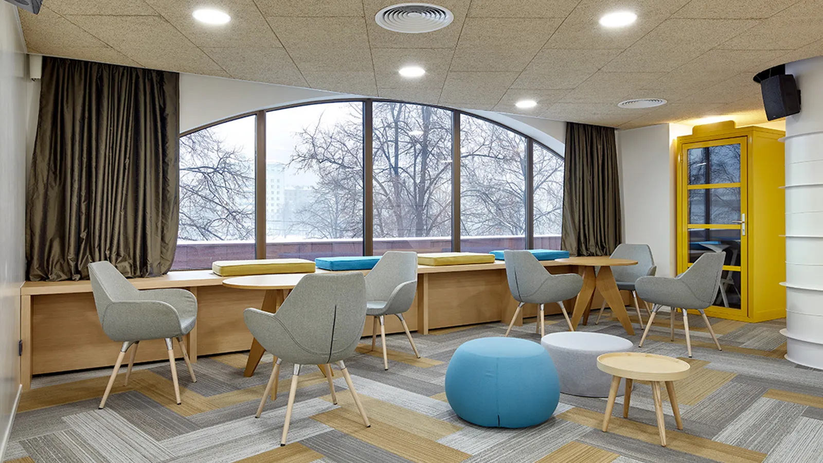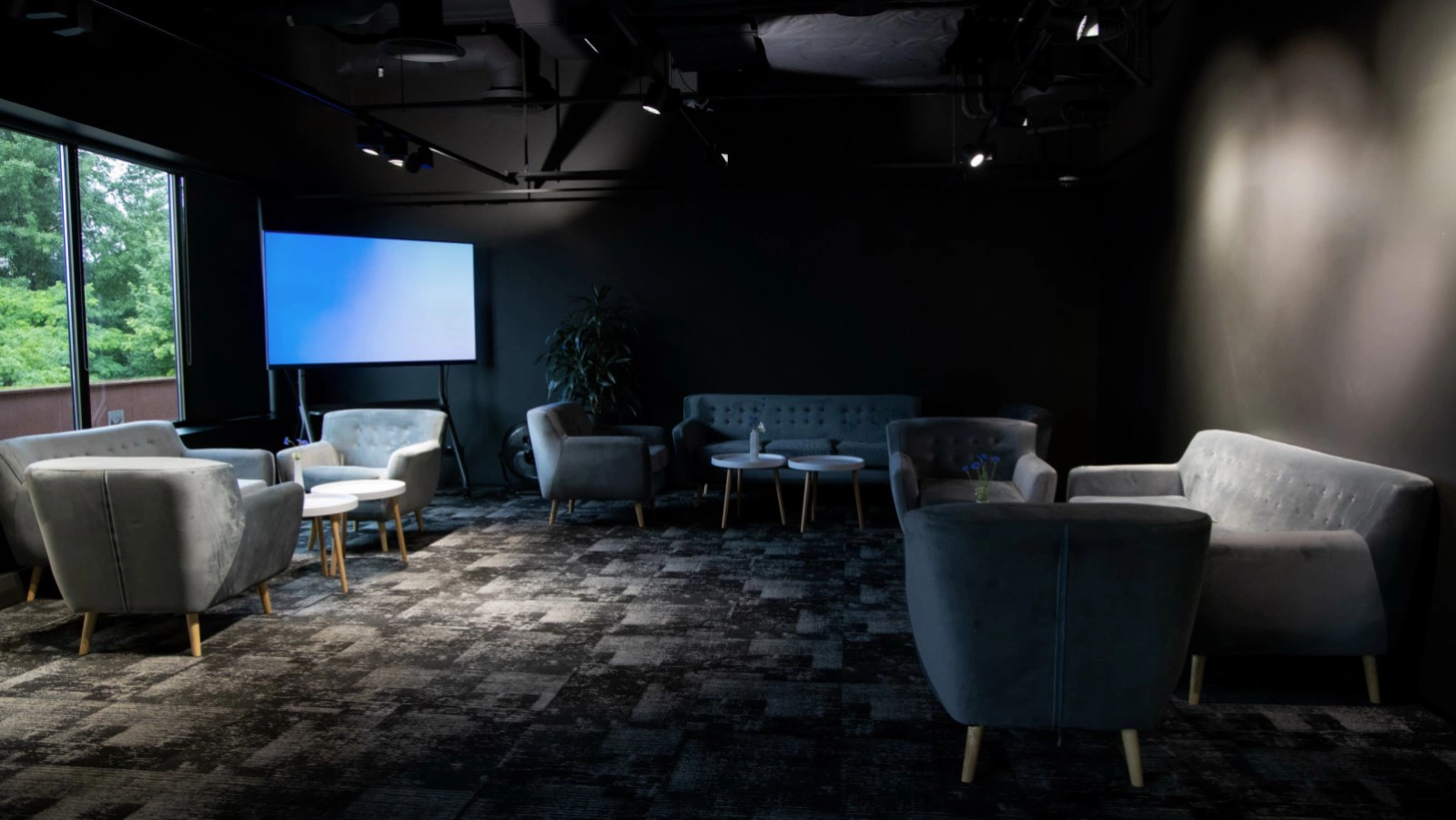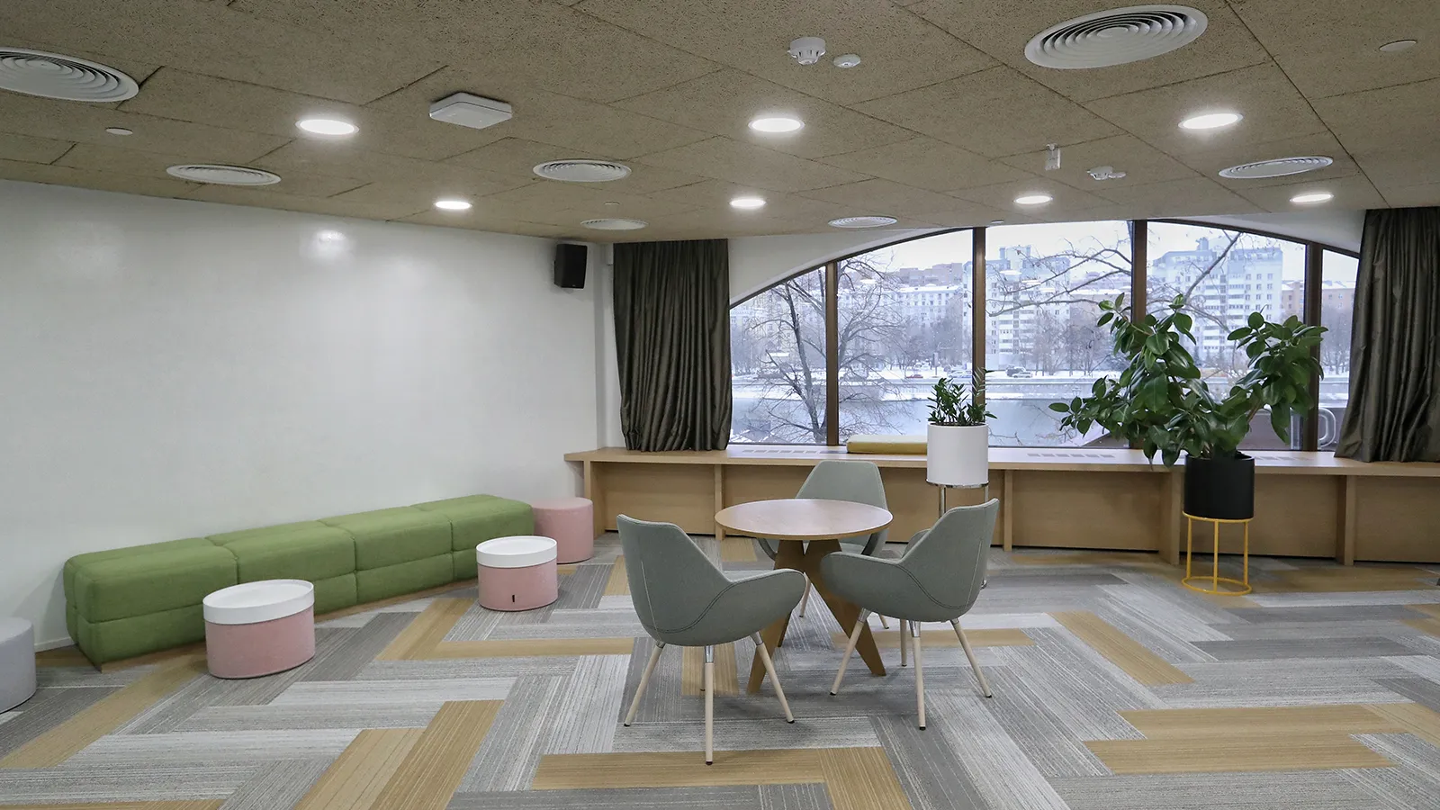Зал можно использовать под лаунж или зал для параллельной сессии. Площадь зала 44,27м2