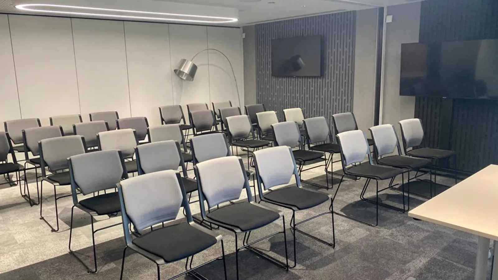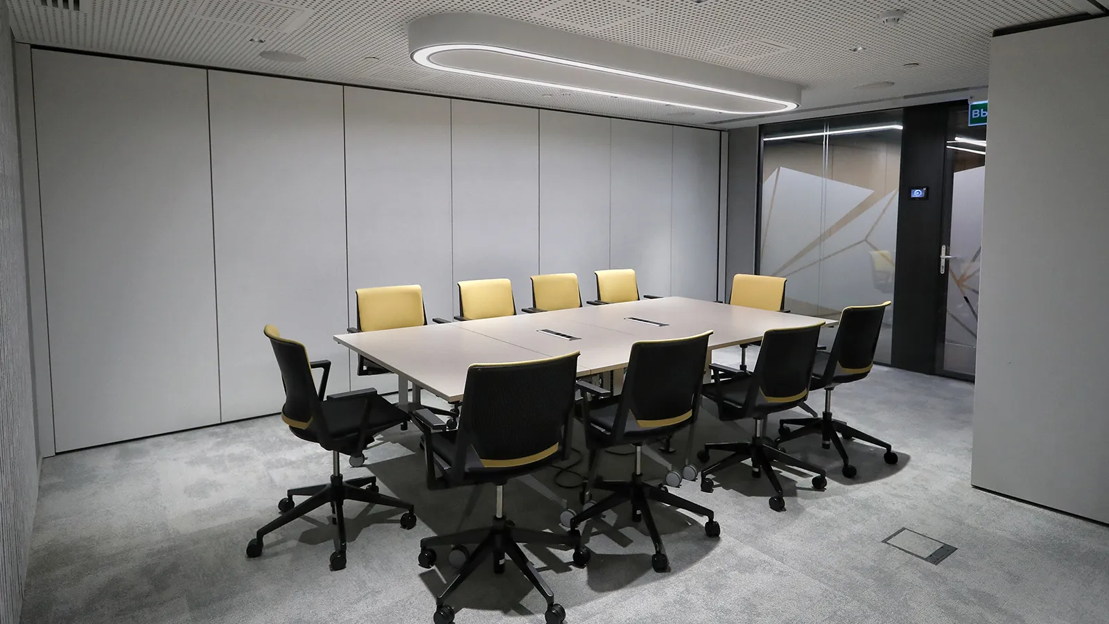 Зал-трансформер может функционировать как один, или как три равнозначные переговорные комнаты,